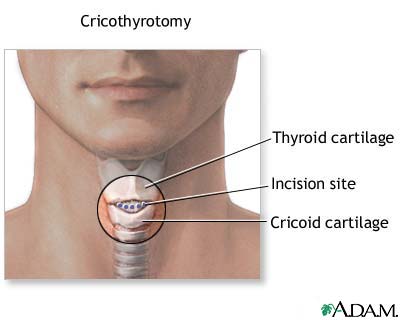 An emergency airway puncture may be performed if all efforts to dislodge an object from the throat have failed. The procedure involves inserting a hollow needle into the throat just below the thyroid cartilage and should only be performed by a medical professional.